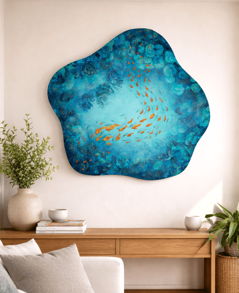 My work blends realism and abstraction to explore organic forms, layered textures, and expressive colour. Each painting is created as a one-of-a-kind original — designed to hold presence and evolve within the spaces it inhabits.